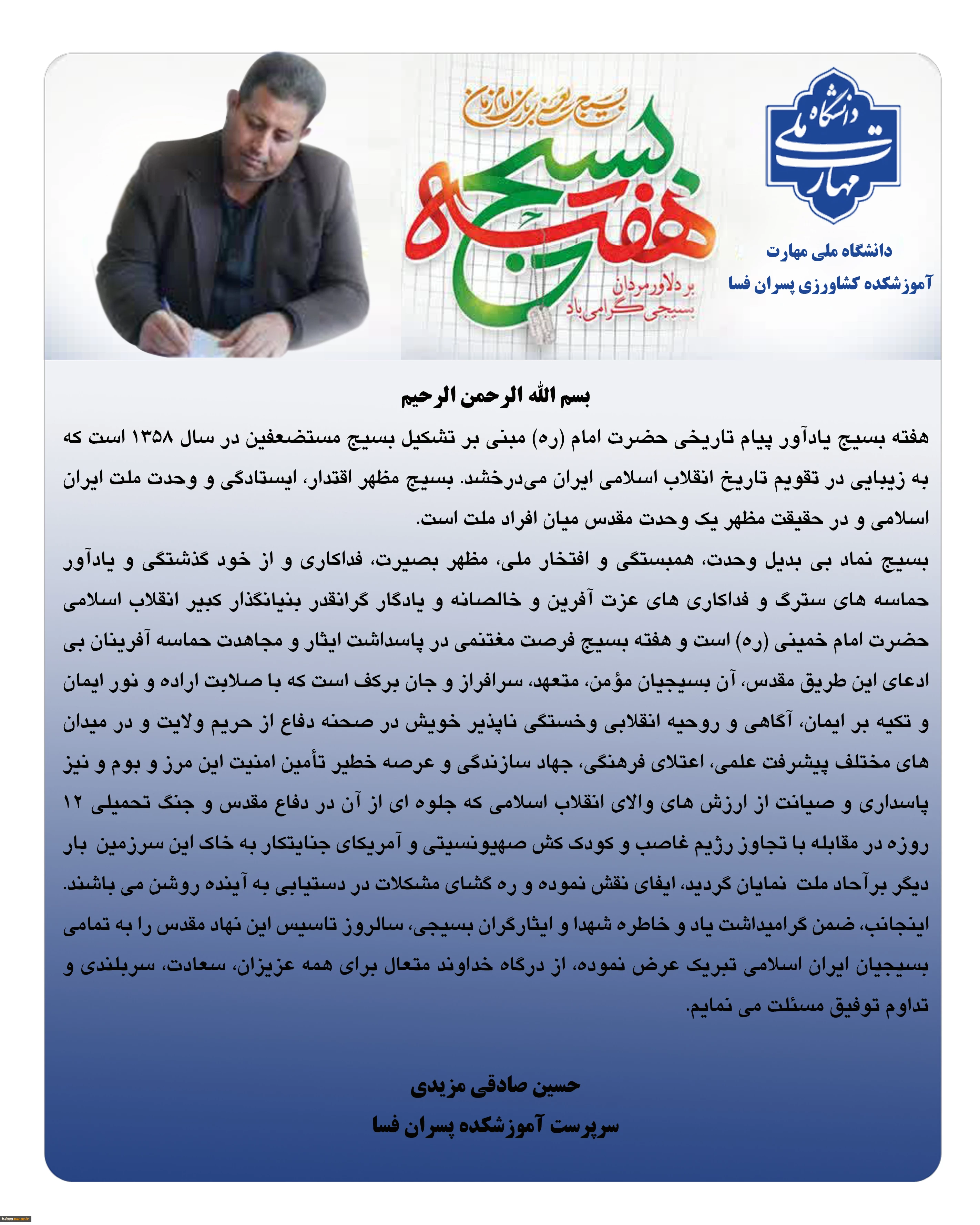 پیام دکتر صادقی به مناسبت هفته بسیج 2