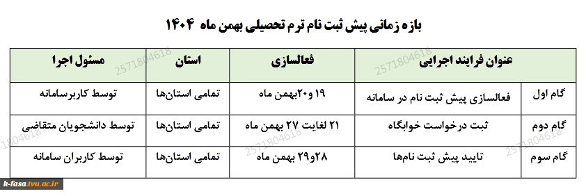 زمان بندی پیش ثبت نام خوابگاه نیمسال دوم 1405-1404 2